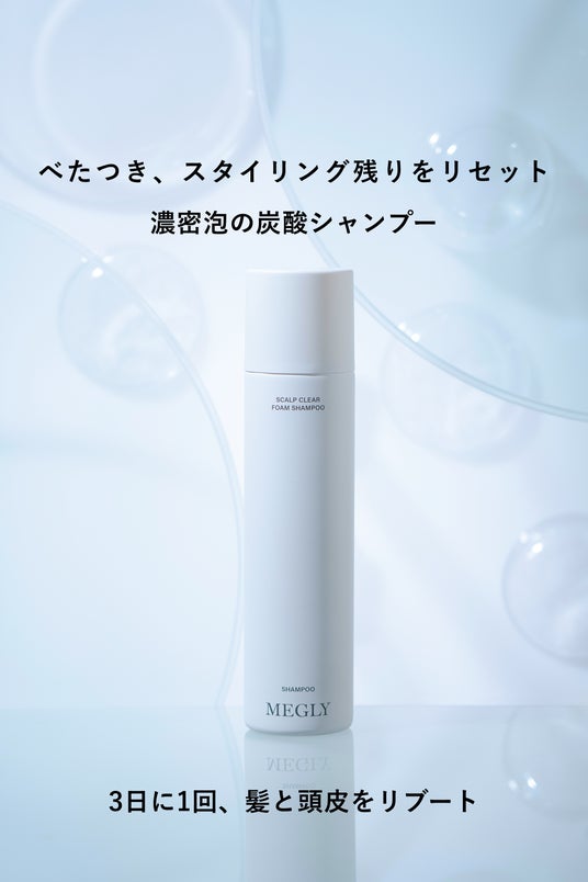 株式会社MTG(本社:愛知県名古屋市、代表取締役社長:松下剛)の炭酸×成分の土台スキンケアブランド『MEGLY(メグリー)』は、炭酸の力で肌の土台を整えるというブランド思想をヘアケアへ拡張。落ち切らない“スタイリング剤の蓄積”に着目し、3日に1回、髪と頭皮をリブートする新発想の炭酸シャンプーを発売いたします。