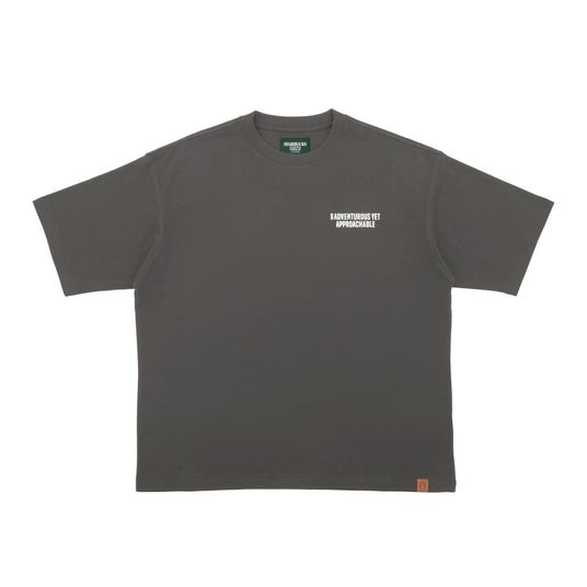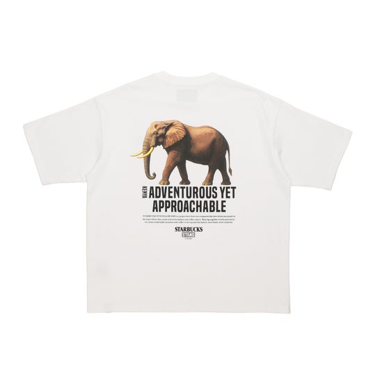 ケニアに生息するゾウ、シマウマ、ライオンのグラフィックを背中に大きくプリントした半袖Tシャツ。14番手の糸で織り上げたUSAコットン天竺を使用し、シャリ感のあるドライタッチと程よい肉感で、季節を問わず快適に着用できます。肩幅と身幅にゆとりを持たせ、ネックは身体に沿う設計でメリハリのあるシルエットに調整。裾のオリジナルピスネームがさりげないアクセントになっています。