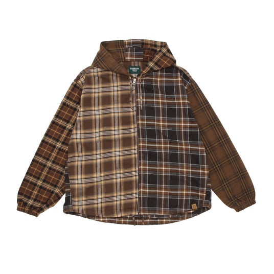 ケニアを象徴する民族の伝統衣装からインスピレーションを得た、4種類のチェック柄を組み合わせたクレイジーパターンが特徴のフーディーブルゾン。絶妙なカラーバランスで仕上げ、程よい肉感のコットンネル素材を使用することで、フランネルシャツ感覚で軽く羽織れる一枚です。肩幅と身幅にゆとりを持たせ、袖口はゴムシャーリング仕様、裾は共地スピンドルでシルエットの調整が可能。さらにオリジナルのピスネームをあしらい、さりげないアクセントを加えています。