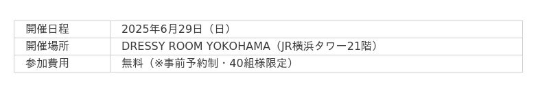 「PLACOLE & DRESSY」ブランドを展開する冒険社プラコレ(本社:神奈川県鎌倉市、代表取締役CEO:武藤功樹)は、横浜駅直結JR横浜タワー21F、ウェディングの魔法にかかる空間"DRESSY ROOM YOKOHAMA"にて、6/29(日)限定で、“体験型“花嫁相談カウンター【DRESSY ROOM】で、ウェディングドレスを探している花嫁さま向けのイベントの開催が決定いたしました。