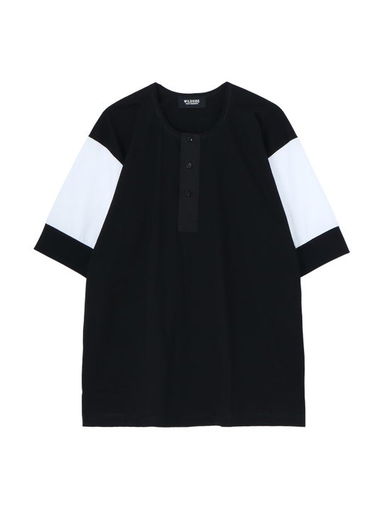 また、ブラックの身頃のTシャツはヘンリーネックのボタンを3つに、ホワイトの身頃のTシャツはボタンを2つにして、それぞれ異なるデザインディテールを施しています。
