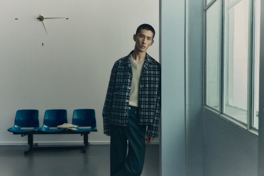 ラインの洗練された美学は、考え抜かれた素材使いに表れています。ウォッシュ加工のレザーは着用を重ねることで風合いを増し、密度のあるダブルフェイスのメリノニット、ピマコットンのスキューバ風ジャージー、ウールスーツ素材が並びます。カラーストーリーはブラック、ダークネイビー、ホワイト、グレー、ベージュを基調に、ライトオーキッドパープルがアクセント。トーナルなチェック柄のフード付きジャケットが暖かみを添え、起毛フランネルシャツには花柄とチェック柄のモチーフが施され、パターンと実用性が絶妙に融合します。