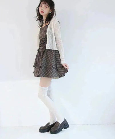 スクエア ローファー/ショップ名: minkymeee厚底シューズとフリル付きのブラウンワンピで仕上げるガーリープレッピー。甘めのコーデで春の暖かなムードを表現。