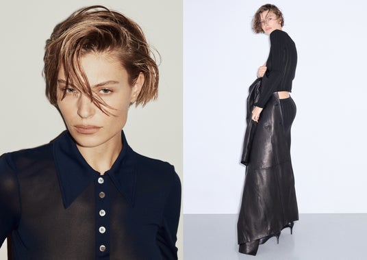 ラインナップには、ワイドスリーブにステッチ入りのクリースを施し、切りっぱなしの縫い代が印象的なダブルブレストのウールブレザーや、ダブル前立てとショルダーレイヤーを備えたコンパクトなカシミアカーディガンが登場します。
