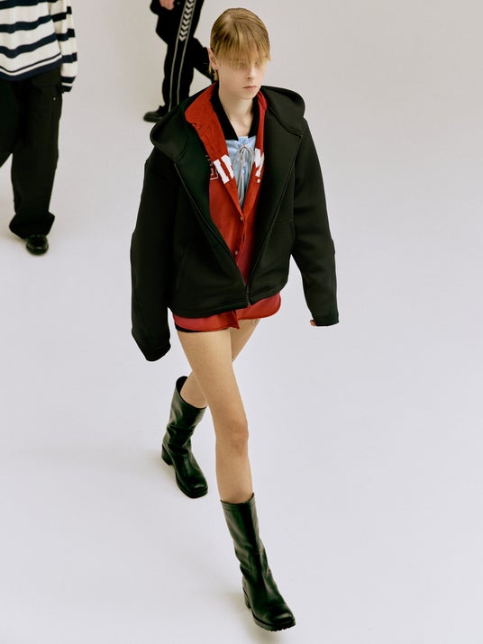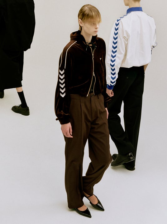 森川マサノリがディレクター就任後のファーストシーズン “New Heritage” で提示したアーカイブの再解釈と、セカンドシーズン “Human Anatomy” で探求した身体構造の視点。この二つの思想を融合させ、ヒュンメルの歴史的デザインを、テクニカルなアプローチで再構築しています。