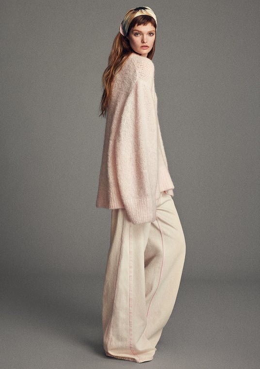 H&M Studio: プリントスカーフ ¥2,999 モヘアブレンドセーター ¥9,999 バギーローデニム ¥9,999