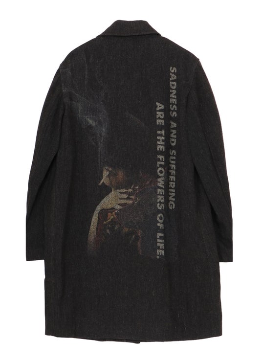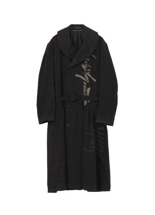ウール本来の風合いを生かした甘撚りの糸で粗く織られたウールエターミン素材に、今シーズンのアートワークをプリントしています。