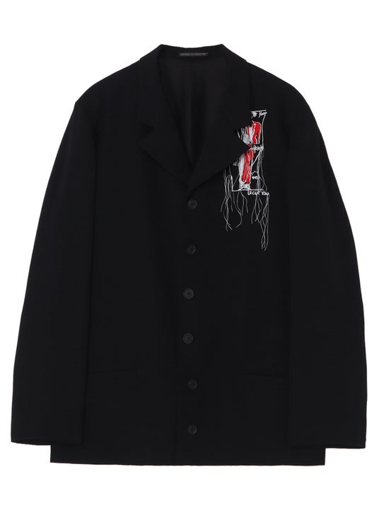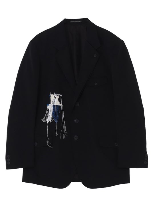 定番のウールギャバジン素材にデッサン画を刺繍で施したジャケット3型を展開いたします。