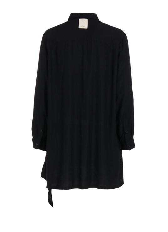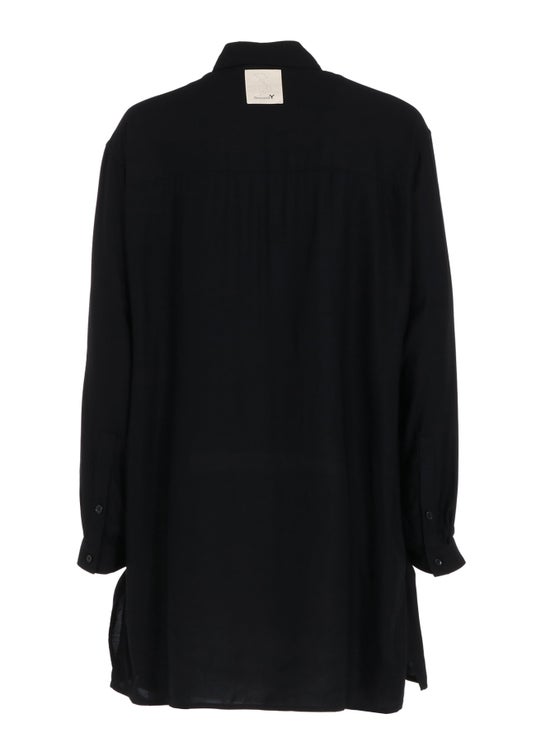 本アイテムは、日本画や墨絵から着想を得た“和”の美意識を基に、カラスをはじめとする5種類のモチーフを大胆に描いた一着です。ボディには、Ground Y 2025年春夏コレクションより始動した新プロジェクト「Beyond Borders」の〈RAYON TWILL LEFT COLLAR DOUBLE-LAYERED SHIRT〉ならびに〈RAYON TWILL LEFT FRONT CUT-OUT SHIRT〉を採用。ゆったりとしたシルエットで、レーヨンを使用した軽やかな生地は涼しげな印象を与えます。