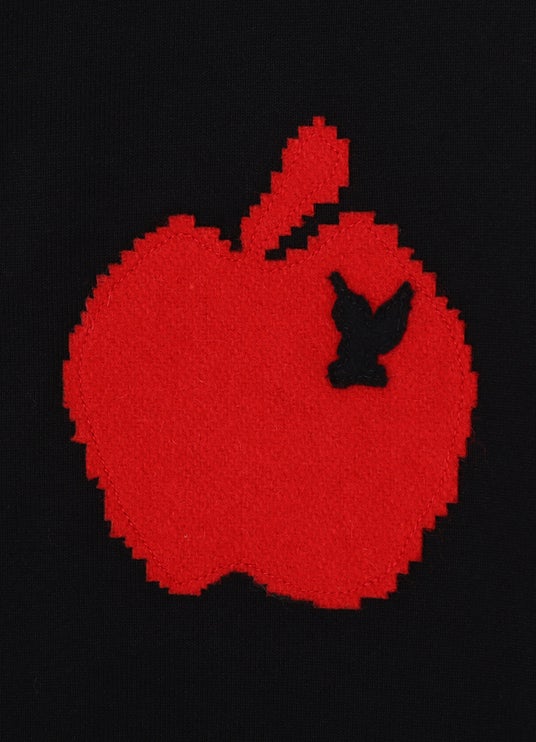 Yohji Yamamoto POUR HOMME 2011A/Wコレクションに登場したニットをオマージュした「BONE AND APPLE ZIP-UP HOODIE」は、当時ニットに用いたデザインをレーザーカットによるメルトンアップリケで新たに表現し、カジュアルで現代的なM A S Uのアイコニックなフーディーへと昇華しました。さらに、リンゴのアップリケにはM A S Uのアイコンである天使のロゴを配置し、コラボレーションならではの特別なデザインに仕上げました。また、存在感のあるフードと、ダブルジップ仕様により、実用性とデザイン性を兼ね備えたプロダクトとなっています。