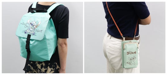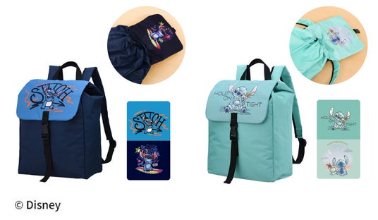 腕組みをした「ディズニー スティッチ」がデザインされているネイビーブルーのリュックと、ぬいぐるみの「スクランプ」を持った「ディズニー スティッチ」がデザインされたターコイズブルーのリュックの2種類が登場。デザイン違いの裏地にも注目です。