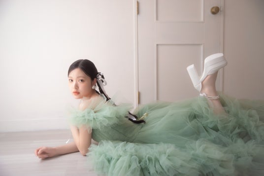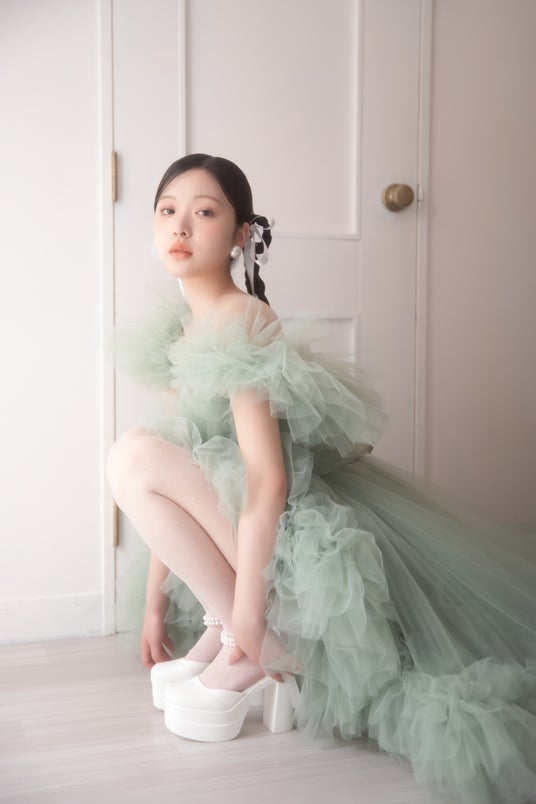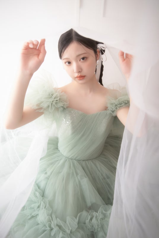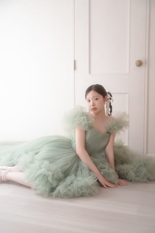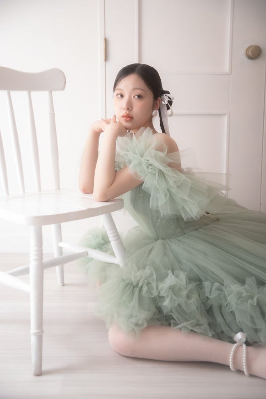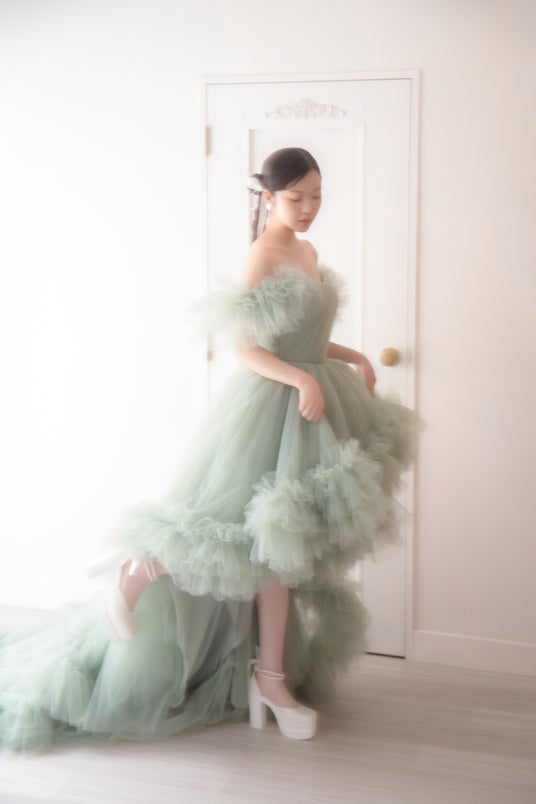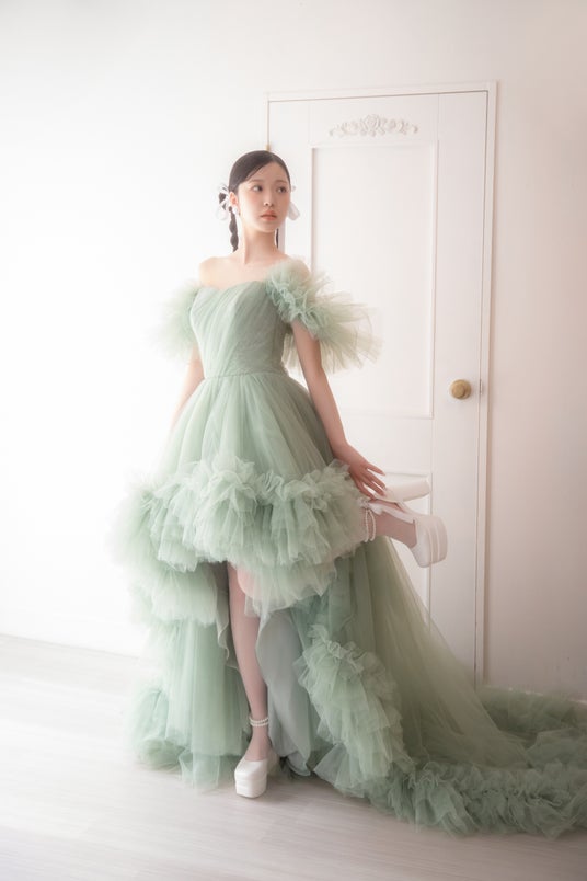 ふんわりドレッシーなピスタチオカラードレスで決める、キューティーなレトロ感。柔らかくトレンド感のあるフォトスタイルをご提案いたします。