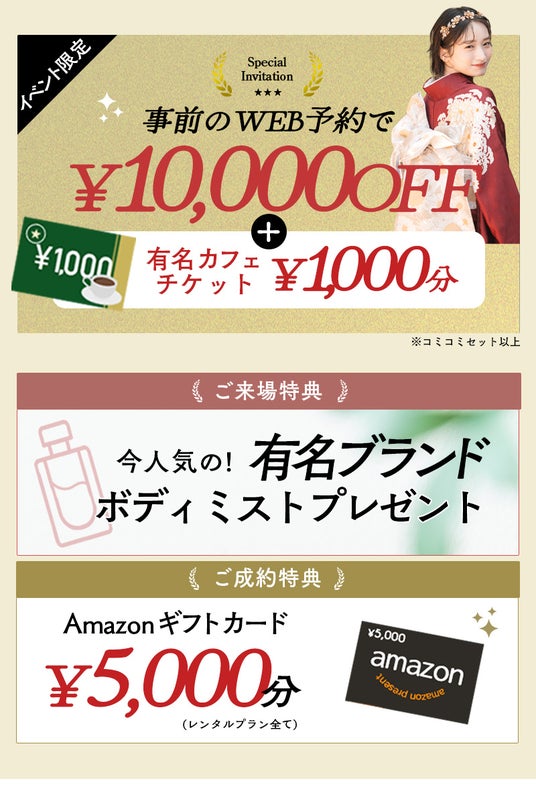 webやLINEからの事前予約で1万円OFF+カフェチケットをプレゼント。