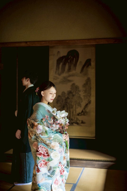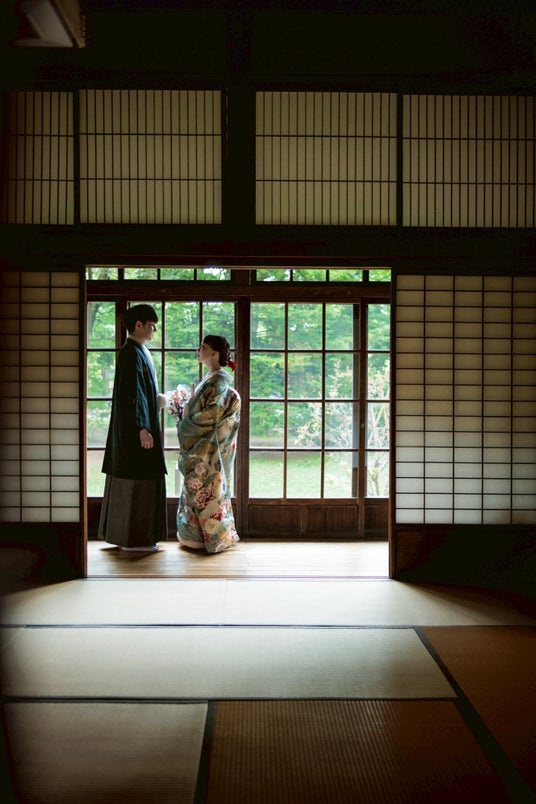 古き良き日本の建築美の中にお二人が佇む姿は、まるで一編の物語のワンシーンのように美しく、見る人の心に深く刻まれます。