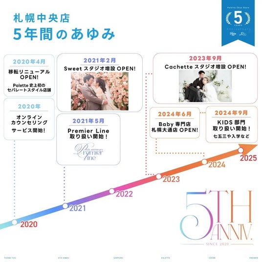 おかげさまで、スタジオPalette札幌中央店・大通店は2025年で移転5周年を迎えることができました。ここまでたくさんのご記念にPaletteを選んでいただき誠にありがとうございます。