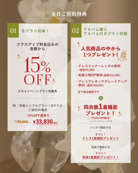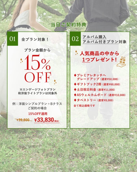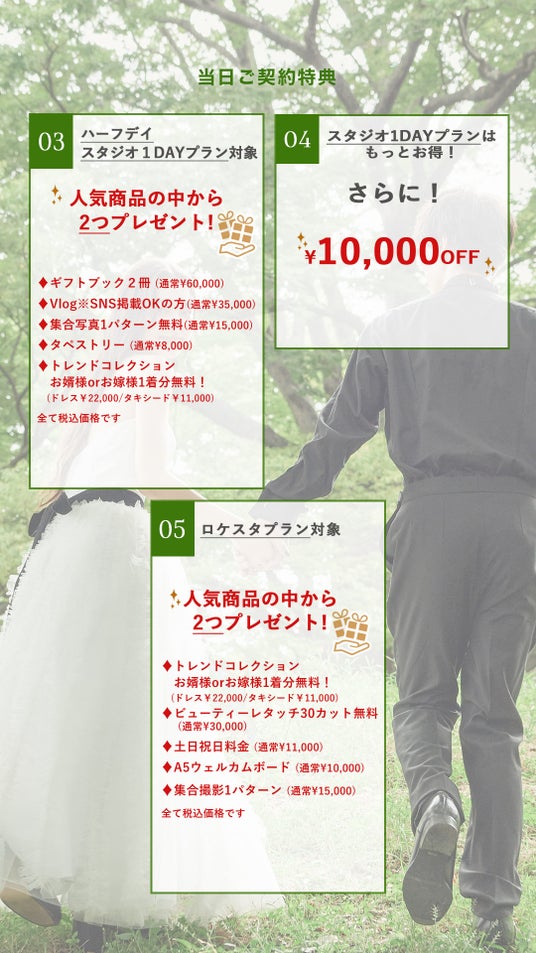 *洋装和装ライトプラン、エンゲージフォトプランは対象外