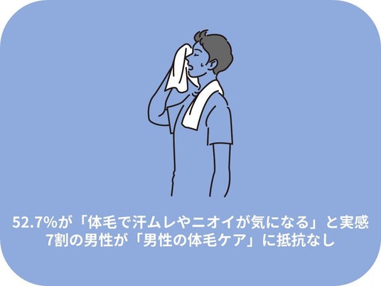 ■52.7%の男性が体毛があることで、汗でムレやすい、ニオイが気になったことがあると回答