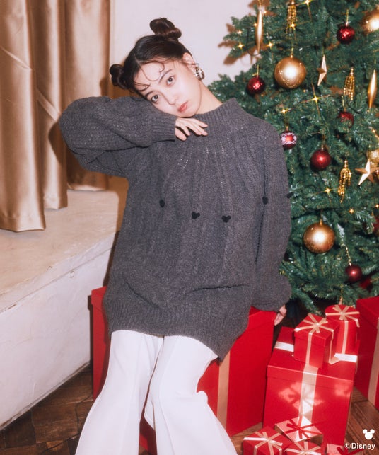 Disney/ミッキーコード刺繍ニットプルオーバー