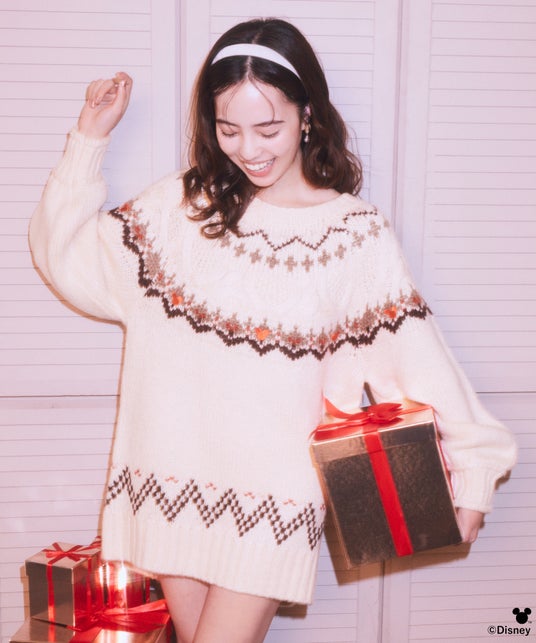 Disney/ミッキー刺繍ノルディックニットチュニック