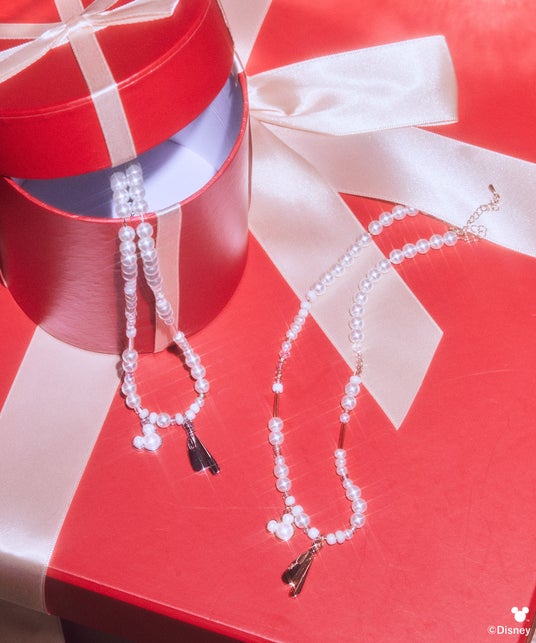 そのほか、さりげない「ミッキーマウス」とリボンモチーフが目を惹くビーズネックレスや、手袋モチーフ付きのチョーカーも取り揃えております。