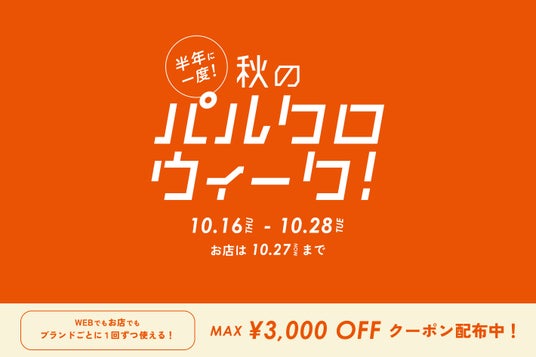 10/16 ~10/28(お店は10/27まで)の期間、パルグループの各店舗&パルクローゼットオンラインストアにて半年に一度のお客様感謝フェアを開催します。