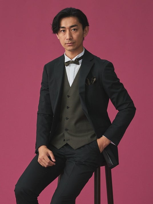 人気が高まるブラウンスーツには、同素材のベストを合わせシックな雰囲気を演出。シャツや小物まで同系色で揃え、統一感のある洗練されたスタイリングです。トレンド感のあるカーキスーツには、ウイングカラーシャツに蝶ネクタイを合わせドレスアップ。都会的なパーティースタイルの完成です。