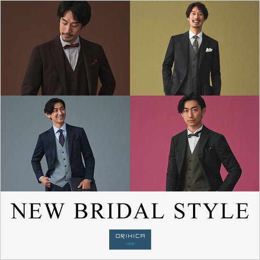結婚式のスタイルだけではなく、列席者のドレスコードも多様化している昨今、自分らしさを表現できるようなカラーやビジネスシーンでも着用できるデザインのニーズが高まっています。ORIHICAでは「NEW BRIDAL STYLE」として、さまざまなブライダルシーンに合わせた多様なカラーのスーツを展開いたします。