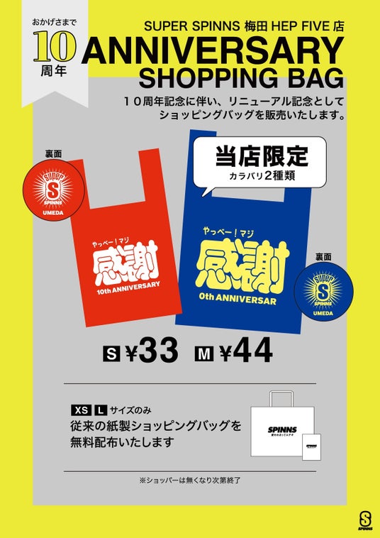 リニューアルおよび10周年を記念し、SUPER SPINNS梅田HEP FIVE店限定のオリジナルショッパーが登場。
