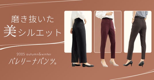 株式会社AOKI(代表取締役社長:青木彰宏)は、はくだけでスラっとまっすぐ伸びるきれいなシルエットを叶える『バレリーナパンツ(R)』から着まわしが楽しめる秋冬の新色の販売を開始いたしました。パンツ専門工場による繊細な立体縫製とアイロンワーク、細かなプレス技術により、脚のシルエットを拾わずに、まっすぐな脚を演出することができます。本商品は、AOKI全店舗およびAOKI公式オンラインショップにて販売いたします。