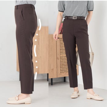 また、美しいシルエットだけではなくはき心地にもこだわって企画しており、ストレッチの効いた素材とウエストの一部分をゴム仕様にすることで窮屈感が少なく、着席時の締め付けなどを軽減しストレスなくご着用いただけます。