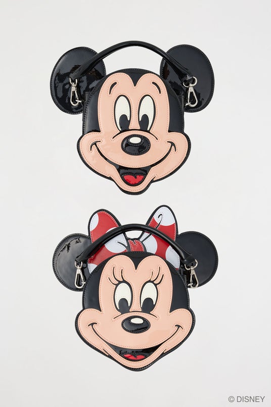 眉ありのレトロテイストなMICKEY MOUSEに加え、今回新たにMINNIE MOUSEバージョンも登場します。ハンドバッグとショルダーバッグの2WAY仕様で、お揃いコーデはもちろん、単体でもコーディネートのアクセントとして楽しめる、とってもかわいいバッグです。
