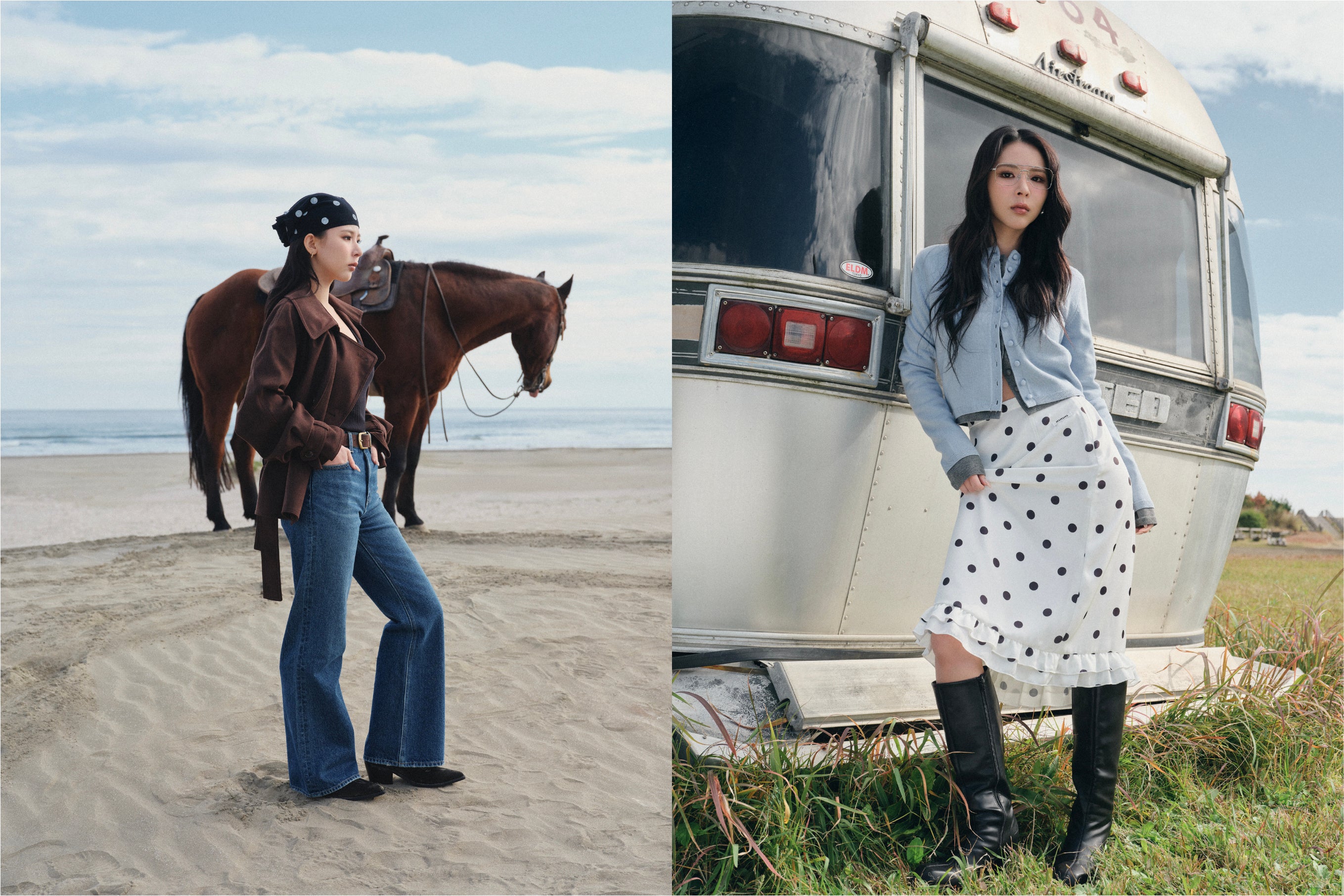 オリジナルピスネーム付きカーディガンやフリルトップス、ポロデザイントップスなど、1枚で主役になるトップスに加え、スエードタッチトレンチやリボン刺繍付きのデニムを合わせれば、甘さと辛さのバランスが取れた今年らしいスタイリングが完成します。