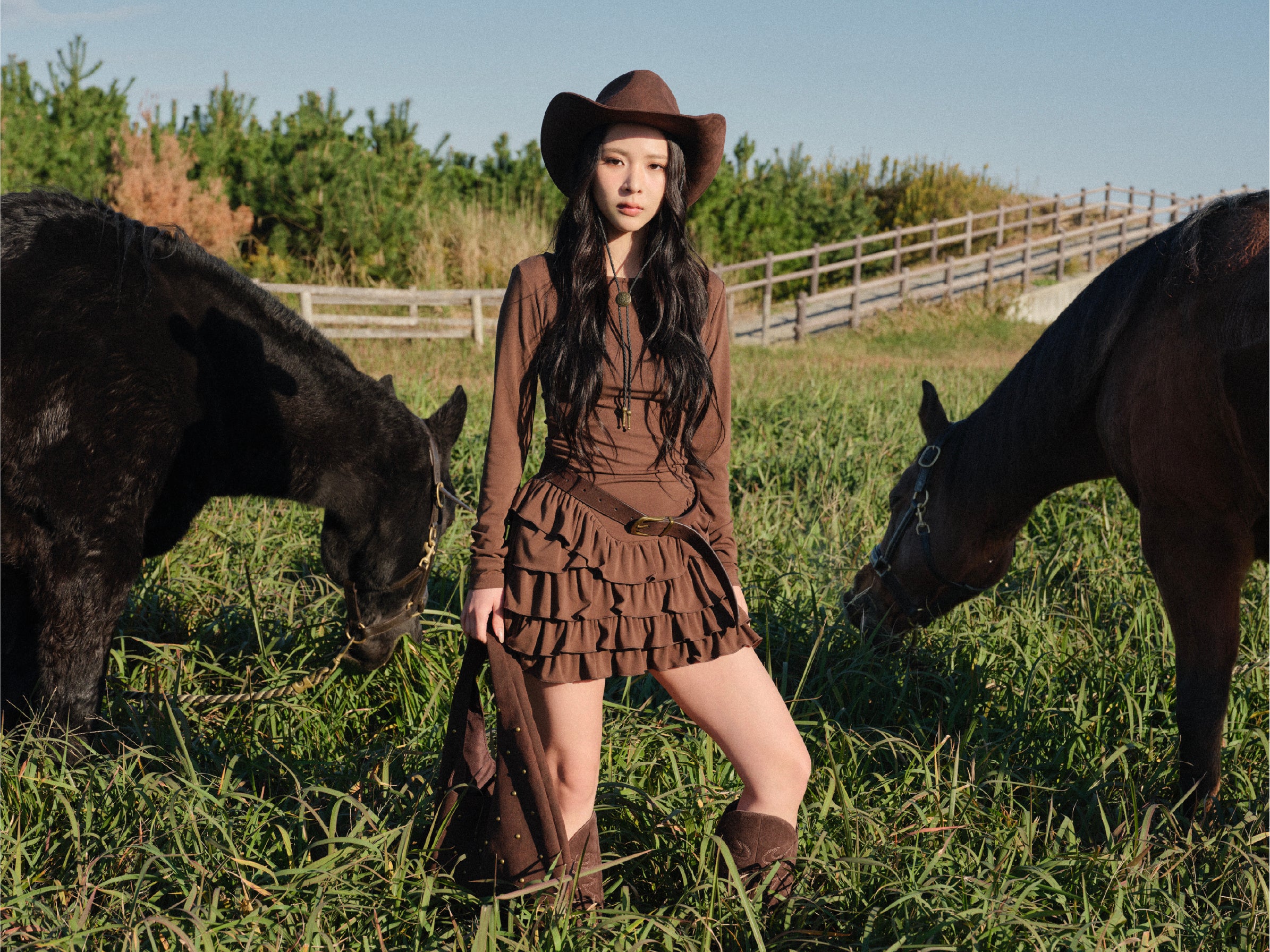 一方で、深めのウエスタンハットや刺繍ディテールが映えるウエスタンブーツ、存在感のあるスタッズバッグなど、エッジを添えるアイテムも充実。