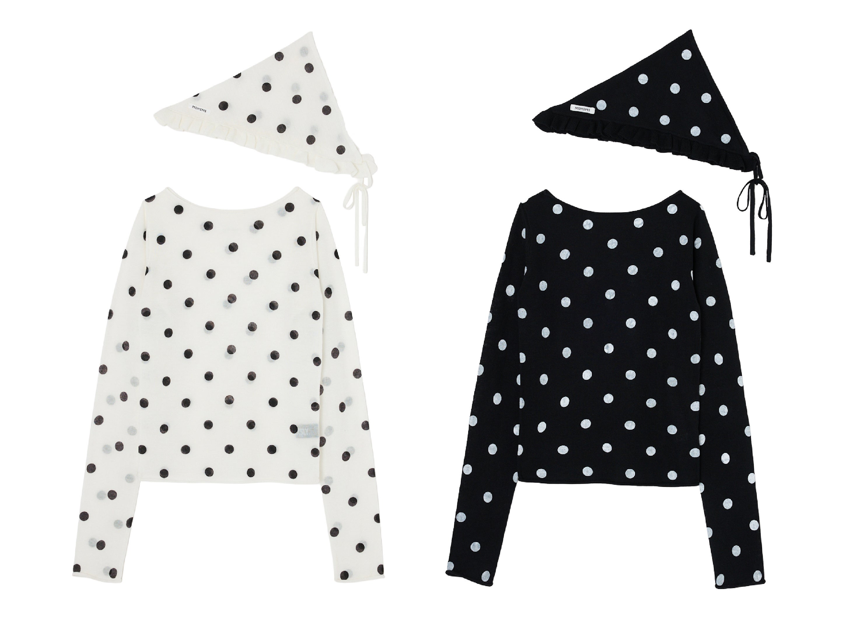 トレンドのドット柄のニットトップスやボリュームシルエットが可愛いバルーンショーツは、スタイリングに旬の甘さをプラスします。
