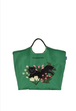 KEITAMARUYAMA のアーカイブから大人気の"黒猫 (CHAT NOIR)"モチーフを贅沢に刺繍であしらった大容量のエコバッグ。