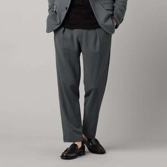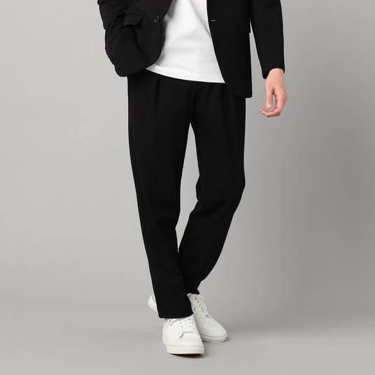夏用セットアップは、通気性が良く涼しく着られることや、軽量感をポイントとして選ばれることが多いです。今回コムサ・メンでは、涼しく着られ、軽くて丈夫な和紙繊維を使用し、適度にフィットしたシルエットのシングルテーラードジャケットと、ゆとりのあるテーパードシルエットのワンタックパンツをつくりました。ジャケットとパンツともにウォッシャブル仕様なので、汗をかいても自宅で洗濯ができるイージーケア。暑い季節の着用に、嬉しいポイントがつまったセットアップです。