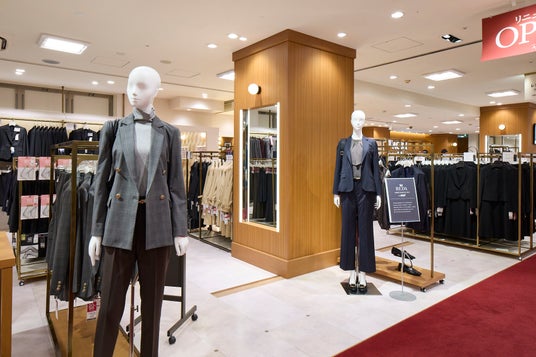 スーツからオフィスカジュアルで人気の神ラクセットアップ、神ラクカットソーなど商品ラインナップを充実。女性のお客様に気軽に立ち寄っていただけるよう、店前からも店内が見通しがよく、コーナー全体の雰囲気が感じられる空間となっています。