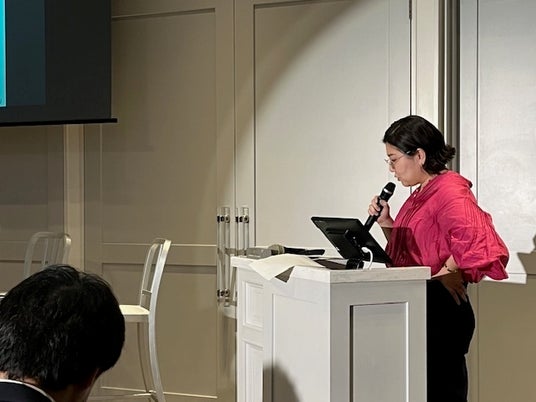 「日系ファッション企業による、インドでのサステナブルなコットン栽培」のプレゼンテーションにて、「インドのコットン畑からはじめるリジェネラティブなものづくり」をテーマに当社のオーガニックコットン栽培への取り組みをご説明しました。