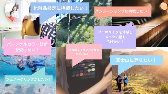 メイクや化粧品に関するチャレンジを通じてお客様への提案の幅を広げたいという内容をはじめ、富士登山やバンジージャンプへの挑戦等、チャレンジは様々。