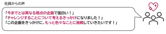 また中には、職場の同僚と一緒に「やったことのないこと」に挑戦する社員もおり、社内のコミュニケーションを促進することにもつながっています。