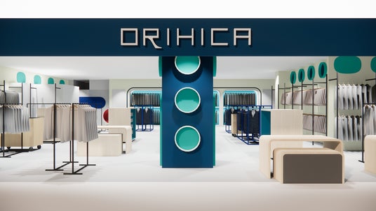 本店舗では、曲線や円をモチーフとした壁面や什器、優しいブルーを基調としたグラデーションを採用し、性別や年代を問わず多くのお客様にとって馴染みやすい空間を演出しております。また、サウンドとデザイン性に定評のあるスピーカーやワイシャツを縦に陳列する新デザインのボックス什器により、心地良い音楽を聴きながらレコードを選ぶような感覚で商品をご覧いただくという、ORIHICAならではのショッピング体験をご提供いたします。