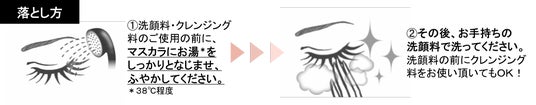 にじみに強くカールキープ × お湯+洗顔料でカンタンにOFFすることができます。