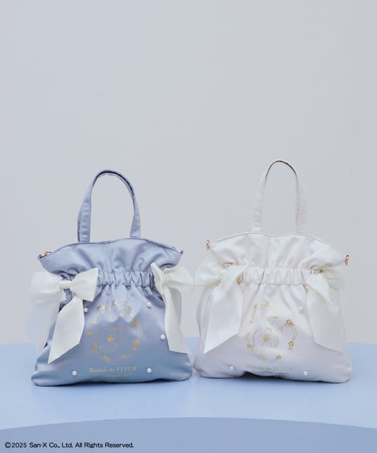 注目アイテムは、持ち手部分にフリルをあしらった華やかなスクエアトートバッグ。フロントには、寄り添うふたりをリボンで囲み、心温まる親子の姿を表現しました。同アートをゴールドで箔プリントしたアイテムは2型をラインアップ。ブランドで人気のダブルリボントートバッグとラウンドポーチには、立体的なパールを散りばめ、コンパクトながらも存在感のあるデザインに仕上げました。