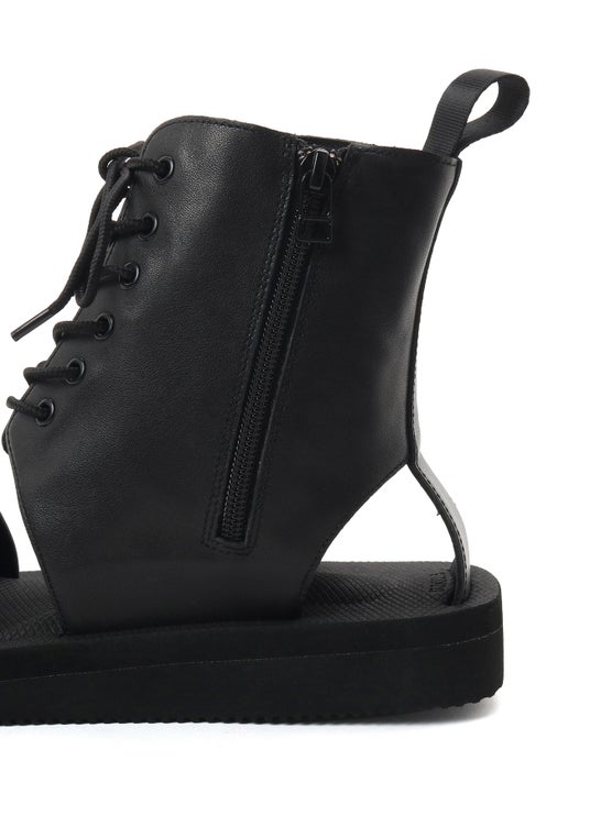 初のコラボレーションでは、株式会社ヨウジヤマモトのブーツ型サンダルのデザインをベースに、SUICOKEが得意とする機能性を融合させた特別な一足が登場します。アッパーには上質なカウレザーを採用し、オールブラックのカラーリングで統一。ミニマルでありながら存在感のあるデザインに仕上げることで、WILDSIDEの世界観を体現しています。