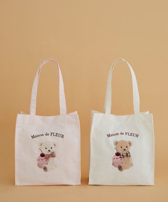 “ぷっくりリボン”でおめかしした『FLEUR TEDDY』が主役のアイテムは5型をラインアップ。スクエアトートにはカップケーキを抱えたアップリケ刺繍を施し、甘く可愛らしいデザインに仕上げました。フェイスモチーフのショルダートートには頭に大きなリボンを乗せて、よりガーリーな雰囲気を演出。また、『FLEUR TEDDY』をそのままバッグに付けて楽しめるパスケースやポーチ、パールストラップ付きのリボンベアチャームも取り揃えております。