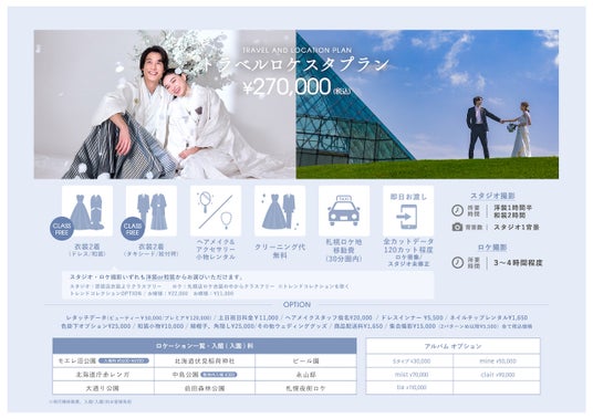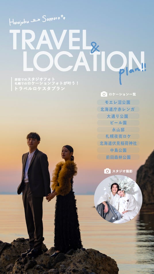 スタジオフォトは東京原宿店、ロケーションフォトは北海道・札幌で叶えられる新プランとなります!