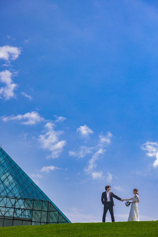 北海道らしい大自然で撮影されたい方にぴったり!また、ガラスのピラミッド内での撮影もできるので雨の日も安心お二人らしい自然体なフォトウェディングをしたい方へ