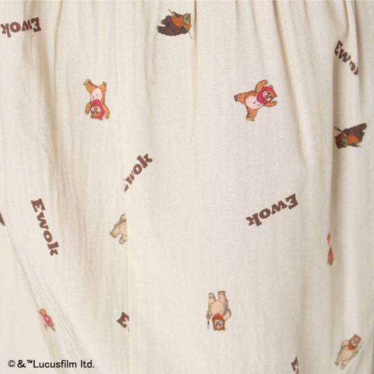 「イウォーク族」が全面にプリントされた総柄スカート。