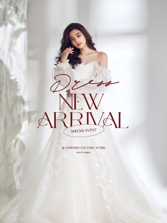20代花嫁の心を掴む、最新トレンドのウェディングドレスがPaletteサッポロファクトリー店に新入荷しました。花嫁の「好き」を叶える一着が勢揃い。
