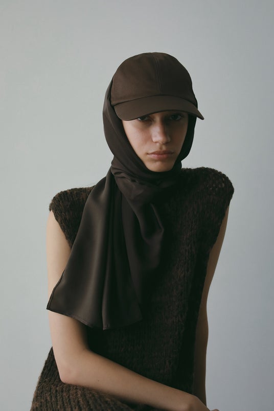 機能性とデザイン性を兼ね備えスカーフの優雅さをあわせた遊び心あるスカーフキャップと、上質なフェイクファーでボリューム感を程よくミニマルで深みのあるシルエットに落とし込んだフェイクムートンハット。